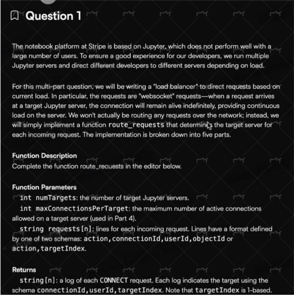 题面非常长、实现量也很大,基本属于一边读题一边设计类结构,同时还要快速完成代码实现,对 coding 速度和设计能力都有要求。 目前Stripe OA 题库其实非常小。这家公司这么多年下来,基本就反复在出三套题,很多同学做过几十套 OA 统计下来,也还是这几道经典题轮换。